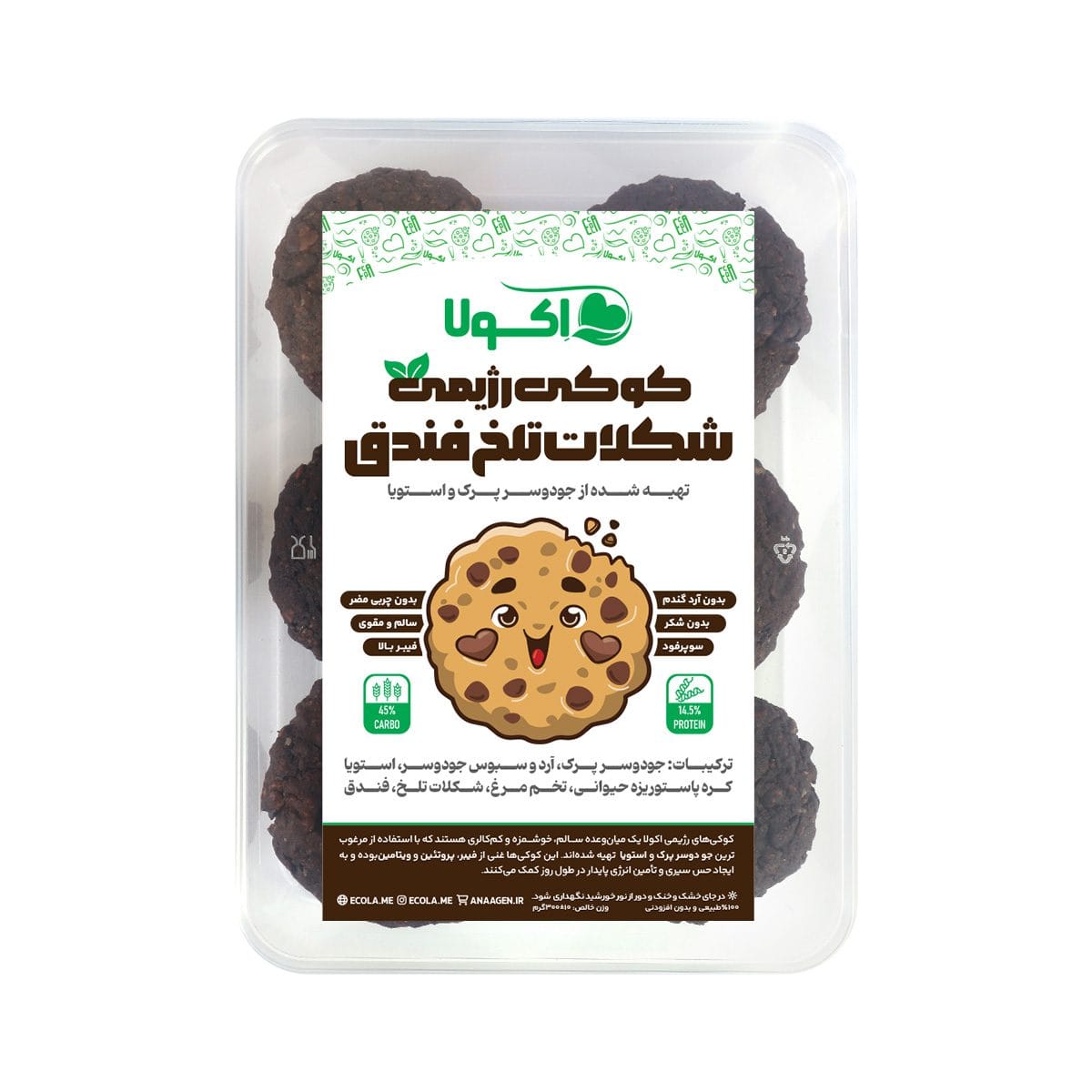 کوکی رژیمی شکلات تلخ فندق اکولا